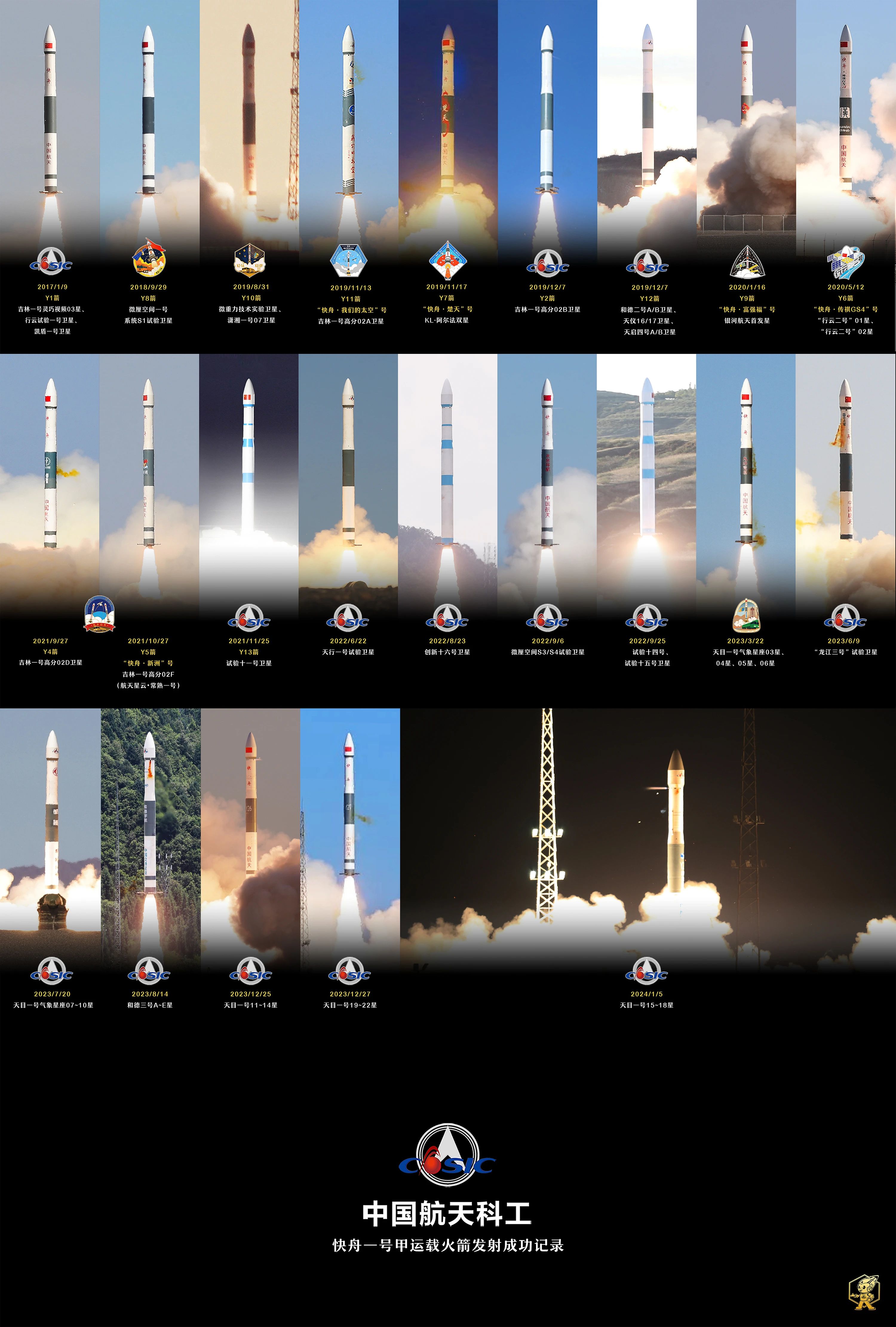 2024年1月5日19時20分,快舟一號甲固體運載火箭在酒泉衛星發射中心點火升空,以“一箭四星”方式將天目一號掩星探測星座15~18星送入預定軌道,發射任務取得圓滿成功。