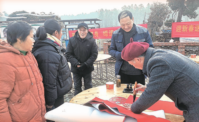 村民們開展寫春聯(lián)送福字活動(dòng)