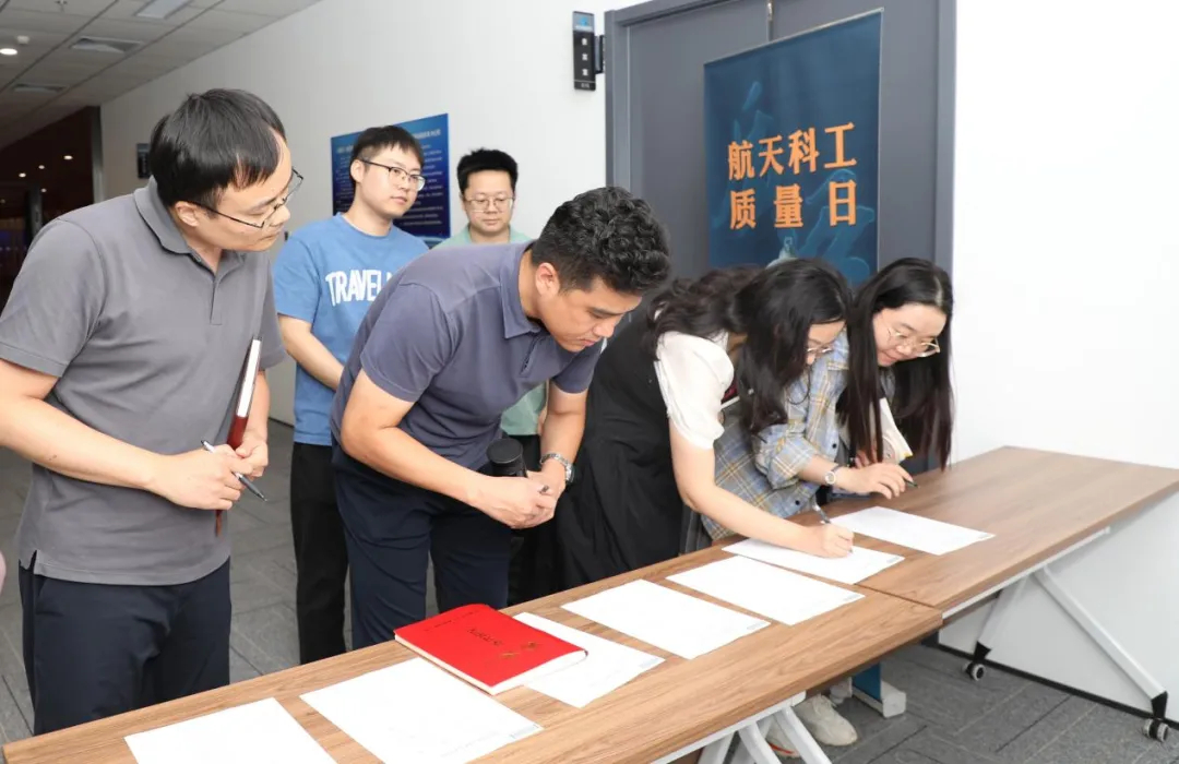 活動現場,全體與會人員在質量承諾墻上進行了承諾簽名,觀看了集團公司2022年以來質量案例警示片《以案為鑒,警鐘長鳴》和十院2023~2024年度典型質量案例警示片《質量責任重于泰山》。有關領導傳達集團公司航天科工質量日主題會議精神,宣讀黨委質量倡議書,“兩總”人員、本部各部門負責人、相關單位主要領導鄭重作了質量承諾,所有參會人員進行了質量應知應會答題。