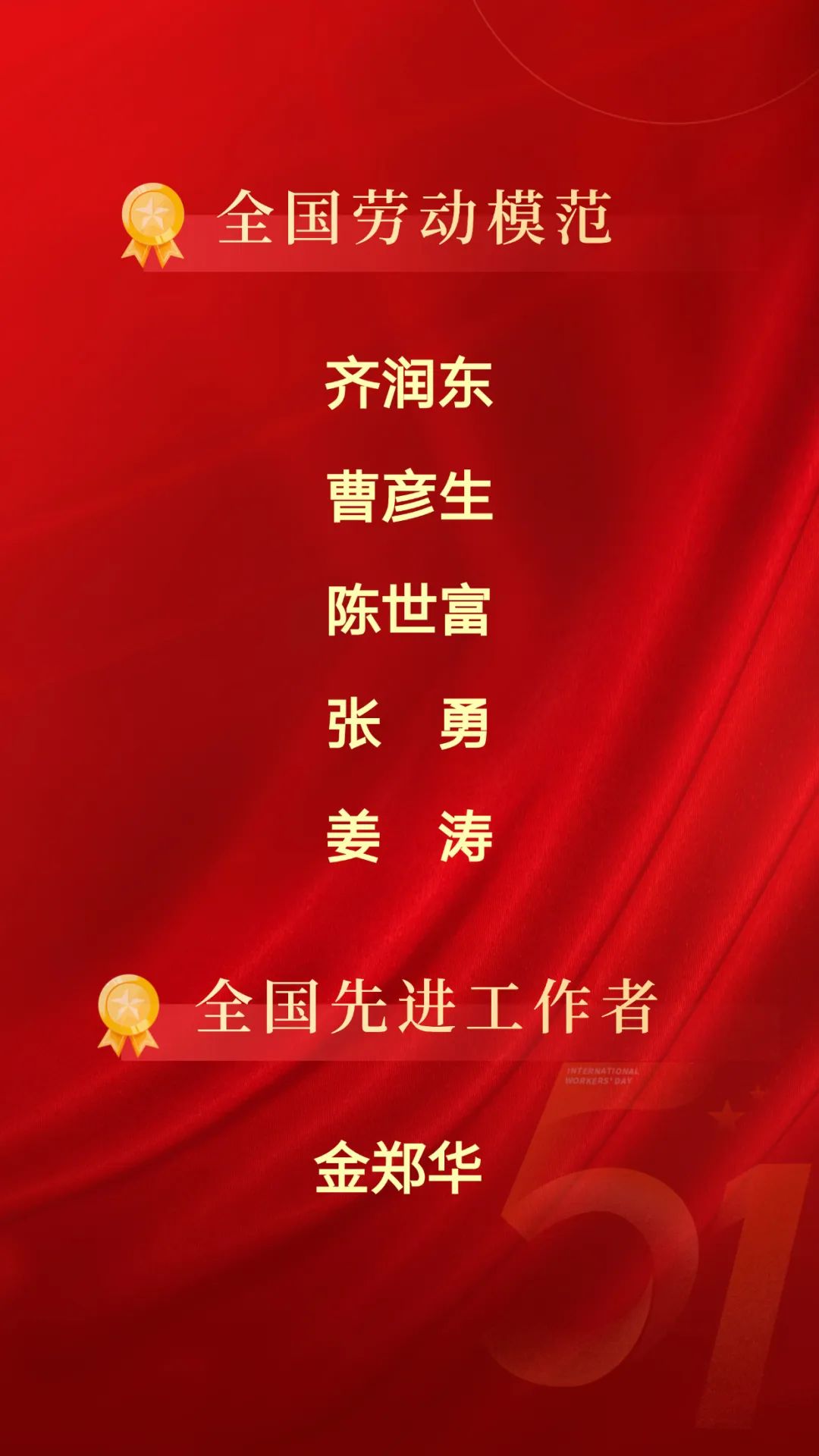 近日,慶祝中華全國(guó)總工會(huì)成立100周年暨全國(guó)勞動(dòng)模范和先進(jìn)工作者表彰大會(huì)在北京舉行,2426人受到表彰,包括1670名全國(guó)勞動(dòng)模范和756名全國(guó)先進(jìn)工作者。