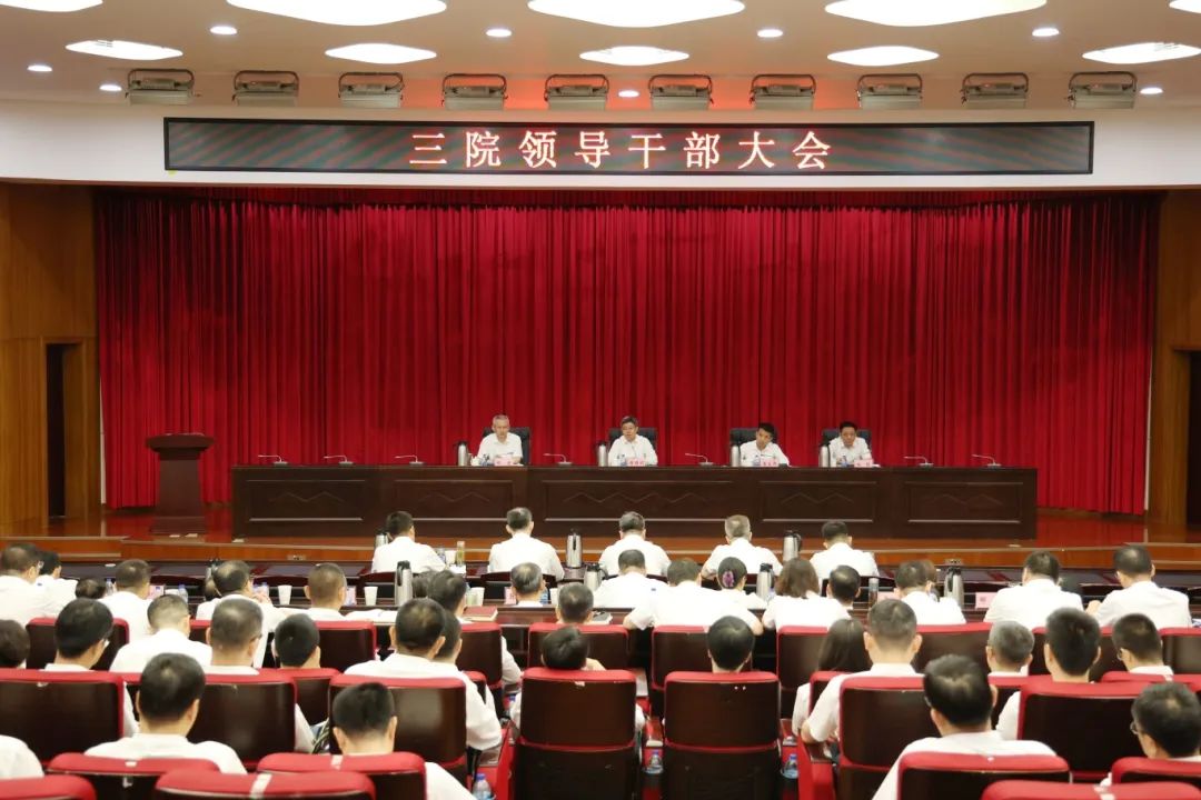 7月2日上午,航天三院召開領導干部大會,中國航天科工集團有限公司黨組書記、董事長陳錫明,黨組成員、副總經理、人力資源部部長唐應偉到三院宣布主要領導任職的決定。三院全體領導班子成員、院本部部門正職及以上領導和院屬單位主要領導參加會議。會議由三院黨委書記施毅主持。