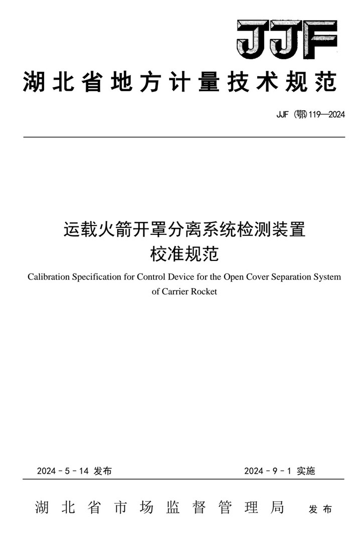 近日,由中國航天科工航天三江計研所作為主要起草單位負責編制的JJF(鄂)118-2024《電子防潮柜濕度、溫度偏差校準規(guī)范》、JJF(鄂)119-2024《固體運載火箭開罩分離系統(tǒng)控制裝置校準規(guī)范》、JJF(鄂)120-2024《蔡恩杯粘度計校準規(guī)范》正式發(fā)布,將于2024年9月1日實施。