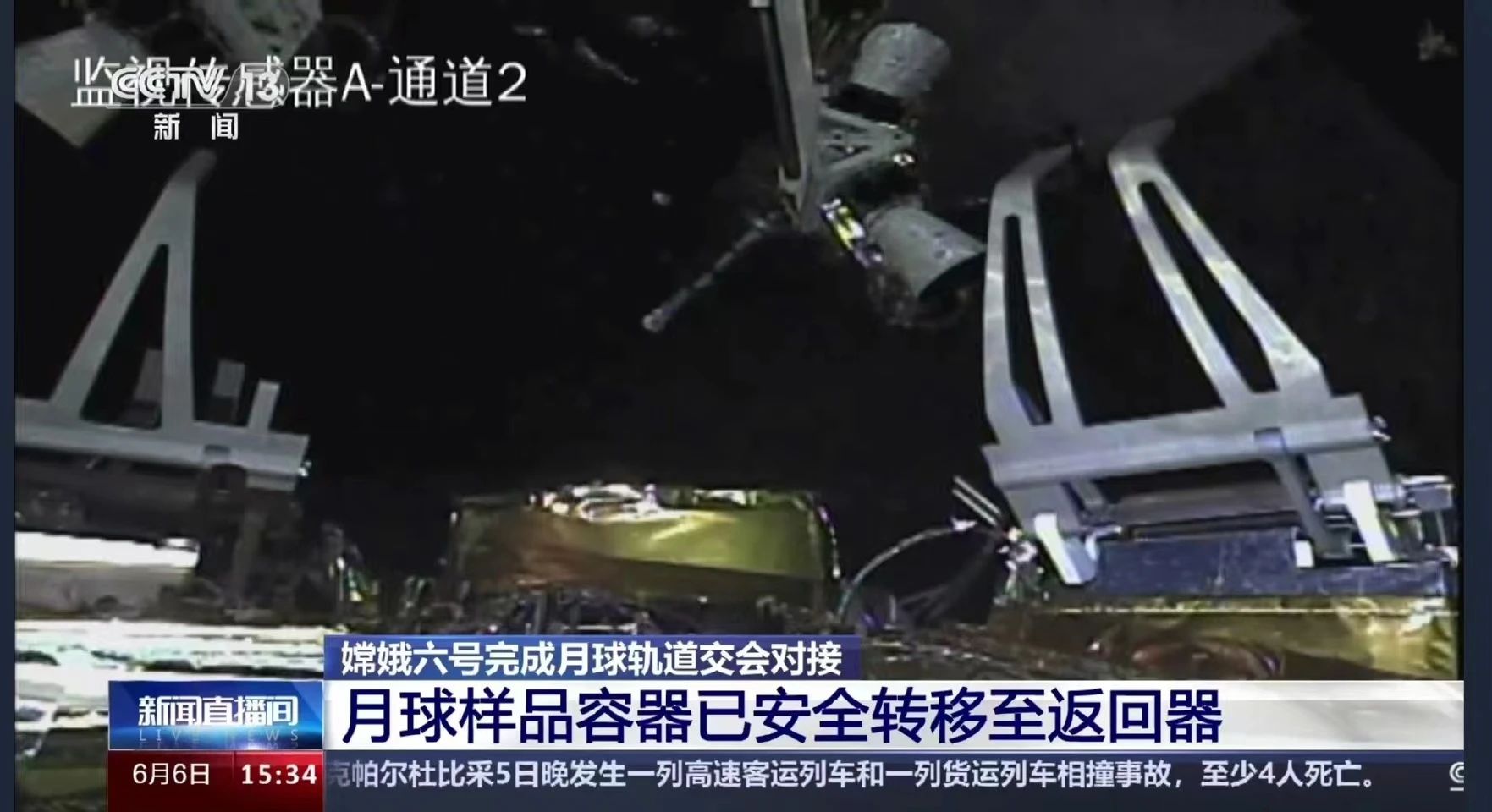 6月6日14時48分,嫦娥六號上升器成功與軌道器和返回器組合體,完成月球軌道的交會對接,并于15時24分將月球樣品容器安全轉移至返回器中。