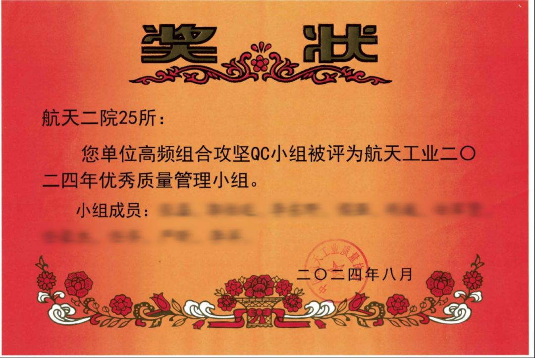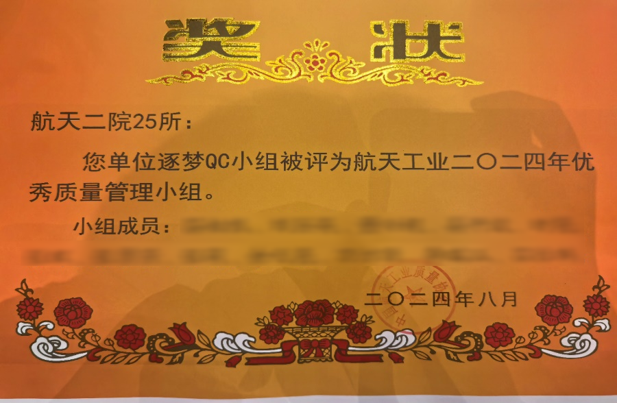 近日,航天二院25所四室逐夢QC小組、裝調部高頻組合攻堅QC小組獲評“航天工業優秀質量管理小組”榮譽稱號。