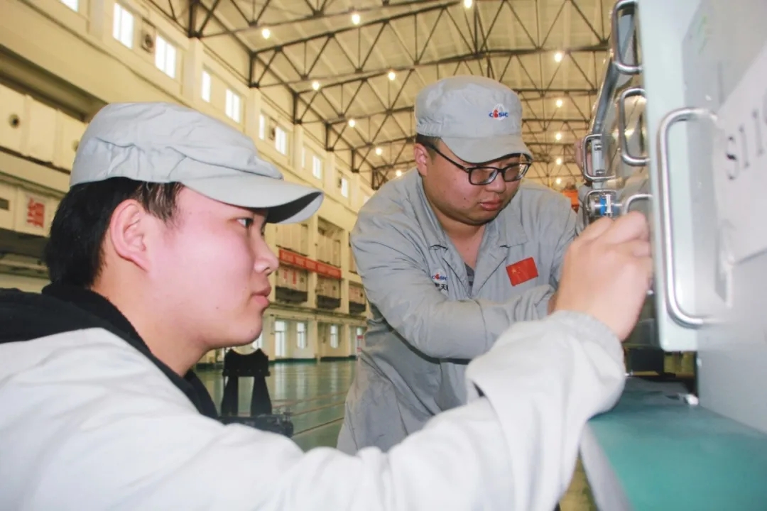 裝配車間內,負責首件產品艙段裝配工作的操作員楊振宇,正手持塞尺,對一部件的安裝間隙進行裝后自檢。