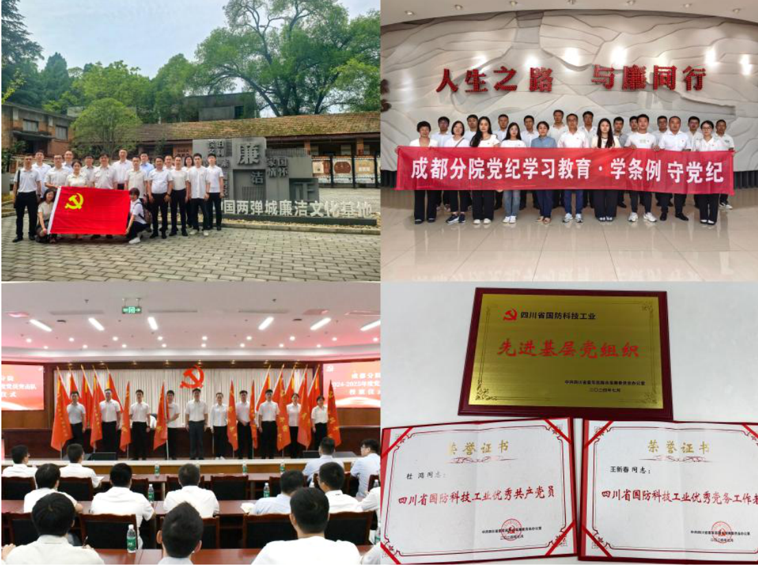 成都分院始終將黨的建設(shè)擺在首位,黨委帶領(lǐng)13個黨支部高質(zhì)量開展黨紀(jì)學(xué)習(xí)教育,通過精心組織參觀警示教育基地,舉辦漫畫解讀《中國共產(chǎn)黨紀(jì)律處分條例》展、拍攝微視頻等,嚴(yán)的基調(diào)、嚴(yán)的措施、嚴(yán)的氛圍進(jìn)一步強(qiáng)化。1個黨支部、2名黨員獲評四川省國防科技工業(yè)“兩優(yōu)一先”表彰,省級榮譽(yù)獎勵實(shí)現(xiàn)“零的突破”。10支黨員突擊隊(duì)攻堅克難,實(shí)現(xiàn)業(yè)務(wù)工作和黨建工作有效融合。