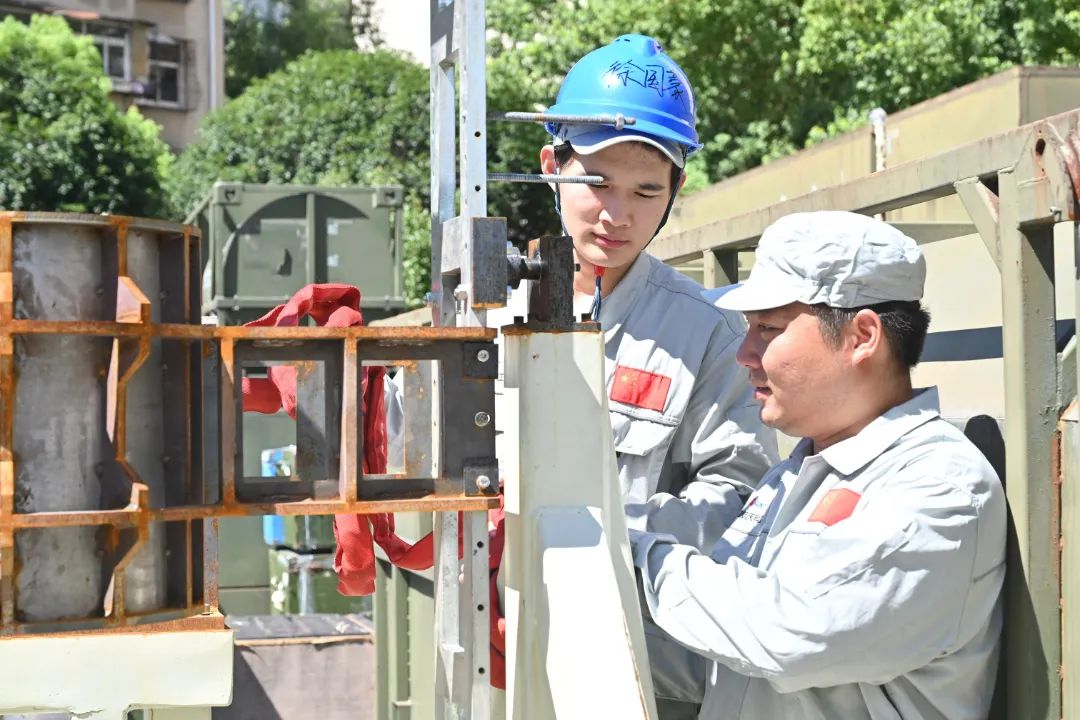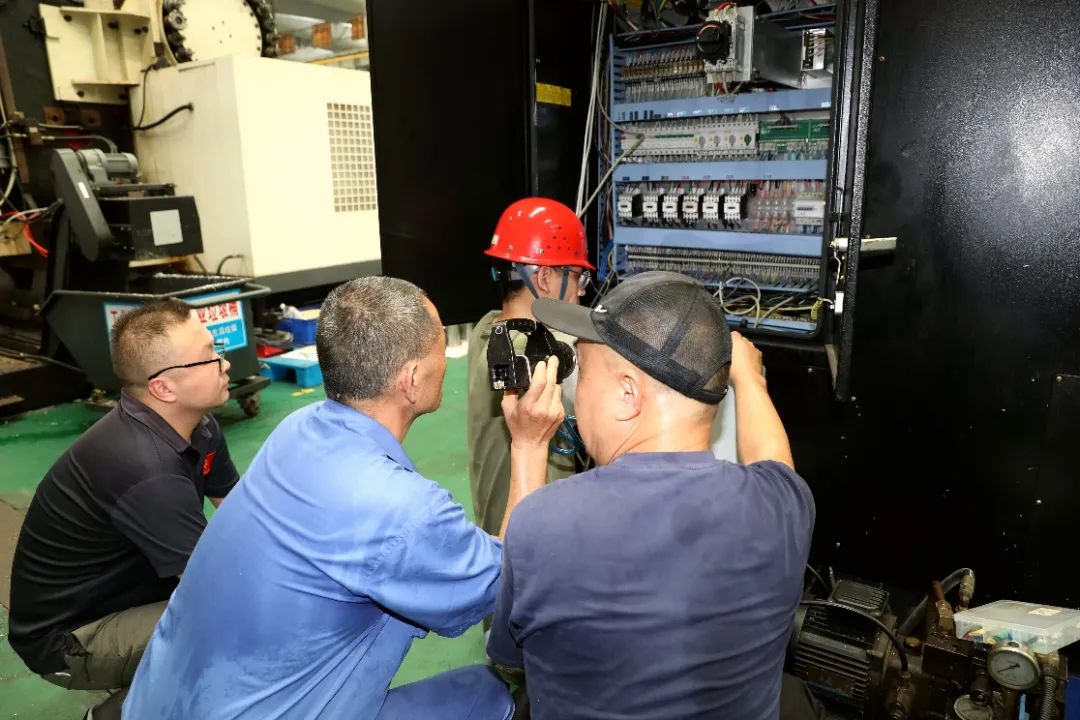 7月9日,氣象臺發布高溫橙色預警。炎熱夏季,正是設備問題高發之時,險峰公司機動保障部全力保障設備正常運行,機修工老張和小蘇正與設備廠家人員共同協作維修著故障設備。(圖文/張玉蓮)
