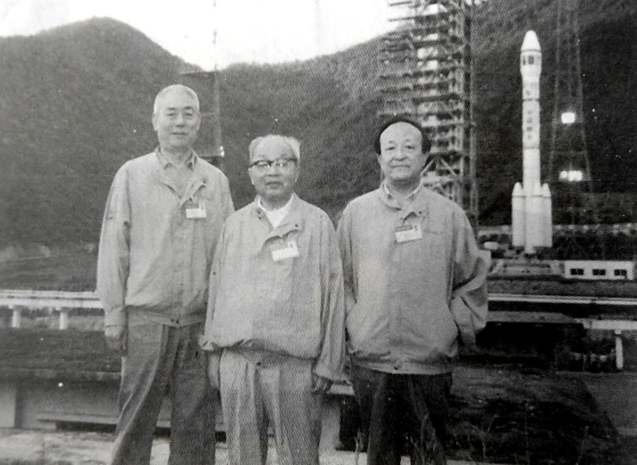 1992年8月9日,屠守鍔(中)在長征二號E運載火箭發(fā)射現(xiàn)場