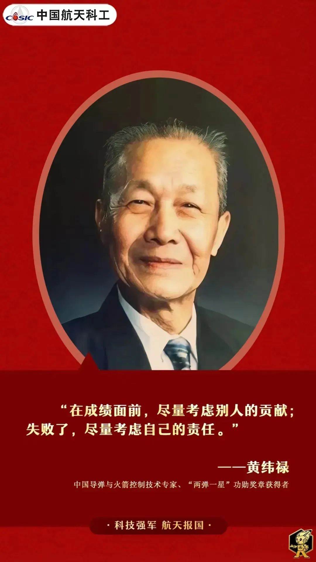 黃緯祿的言行,讓我們看到一位大科學家投身航天事業作出的選擇與追求:淡泊名利,求真務實。越是遠離名利,越能聚精會神。尤其作為技術領導,更要把全部精力投入到對科學真理的追求上:有榮譽,讓,先人后己;有困難,上,身先士卒;有責任,扛,勇于擔當!