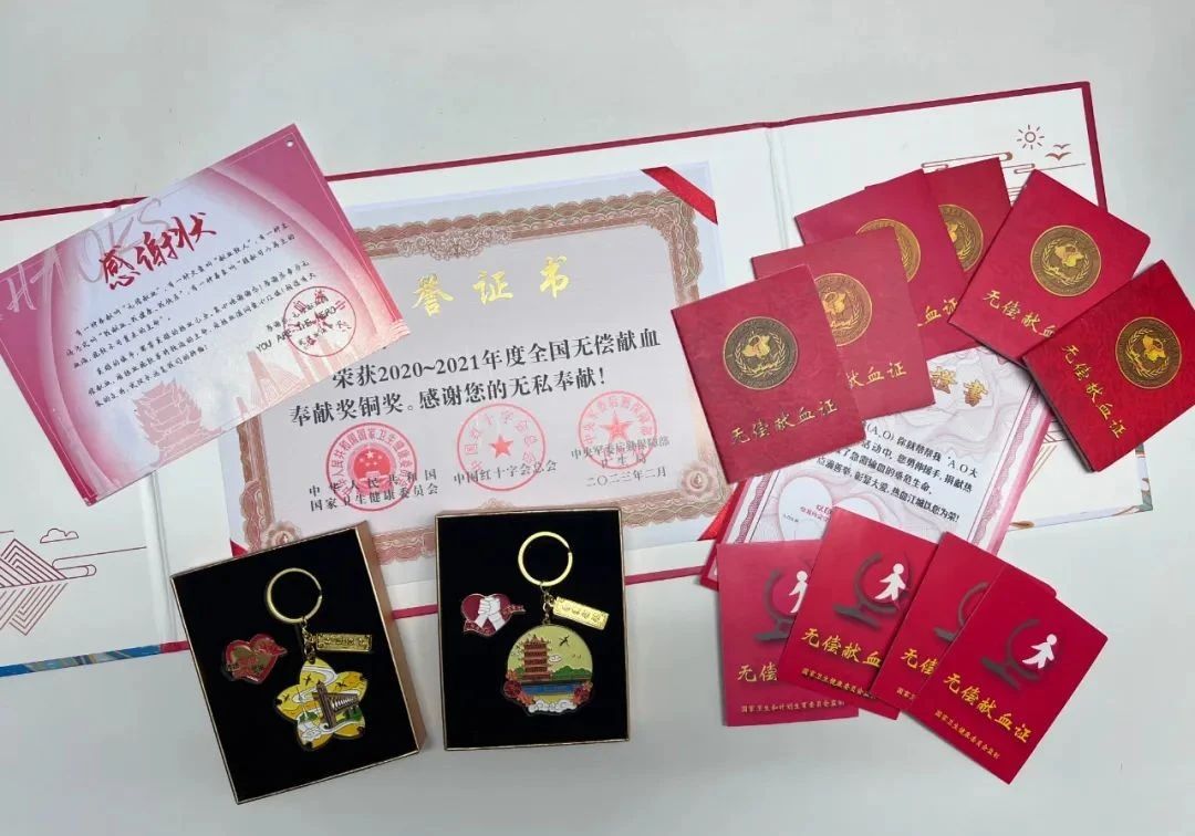 “2020-2021年度全國(guó)無償獻(xiàn)血奉獻(xiàn)銅獎(jiǎng)”“最佳履行社會(huì)公益責(zé)任獎(jiǎng)”……一本本獻(xiàn)血證、一張張榮譽(yù)證書、一封封感謝信,見證著分公司20年如一日,踐行救死扶傷、助人為樂的傳統(tǒng)美德,回報(bào)社會(huì)、奉獻(xiàn)社會(huì)的赤誠(chéng)之心。(海報(bào)/高婕 文/財(cái)宣)
