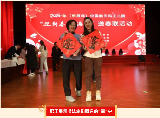 近日,在甲辰年新春佳節(jié)即將到來之際,為進(jìn)一步激發(fā)廣大職工建功新時代、建設(shè)航天強(qiáng)國的豪情,營造喜慶和諧、健康文明的濃郁節(jié)日氣氛,由中國航天書法家協(xié)會主辦,中國航天科工二院工會承辦,203所工會協(xié)辦的2024年“迎新春 福滿門”送春聯(lián)活動在二院職工文化中心隆重舉行,為廣大職工群眾送上了新春祝福,傳遞了節(jié)日喜悅。
