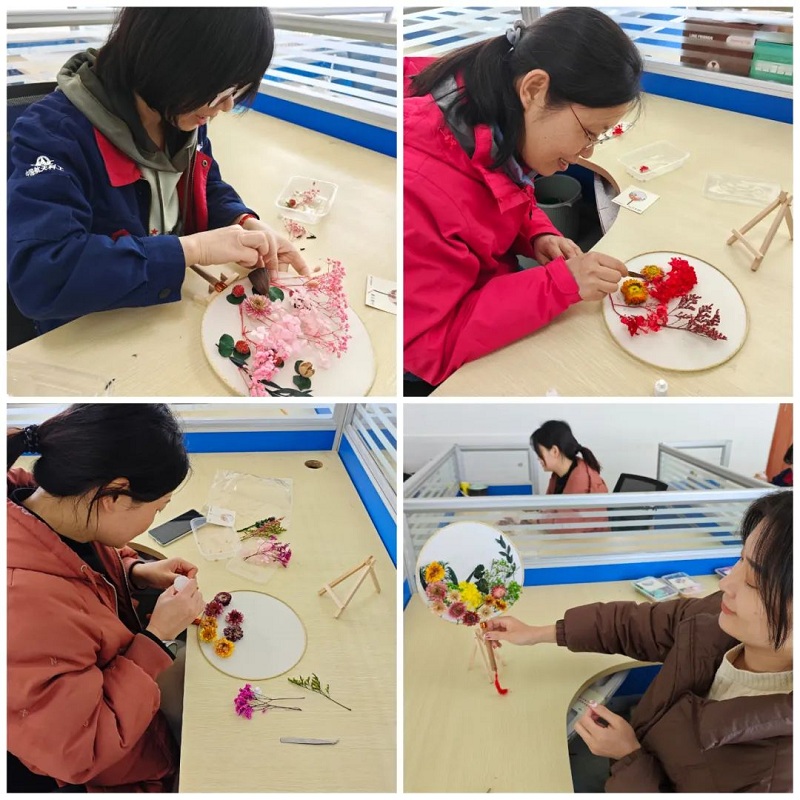 整個過程中,大家相互交流團扇制作的細節,彼此欣賞夸贊,綻放出喜悅的笑臉。活動最后,大家聚在一起將做好的團扇展示拍照,共同合影留念,此次活動也在一片歡聲笑語的氣氛中圓滿結束。
