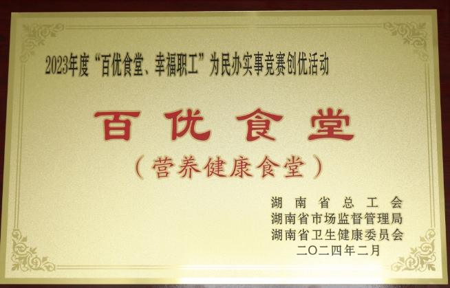 日前,由湖南省總工會(huì)、湖南省市場(chǎng)監(jiān)督管理局湖南省衛(wèi)生健康委員會(huì)共同組織開(kāi)展的2023年度“百優(yōu)食堂、幸福職工”為民辦實(shí)事競(jìng)賽創(chuàng)優(yōu)活動(dòng)結(jié)果出爐,中國(guó)航天科工湖南航天職工食堂“食”至名歸,喜獲2023年度百優(yōu)食堂(營(yíng)養(yǎng)健康食堂)榮譽(yù)稱(chēng)號(hào)。