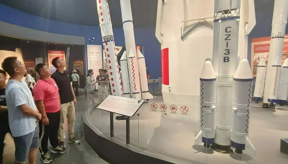參觀(guān)過(guò)程中,講解員詳細(xì)介紹了中國(guó)航天事業(yè)的發(fā)展歷程和取得的輝煌成就。展覽現(xiàn)場(chǎng),“東方紅一號(hào)”衛(wèi)星的模型熠熠生輝,“神舟”系列飛船發(fā)射圖片勾勒出科技進(jìn)步的足跡,“天問(wèn)”探火的多媒體展示更是將中國(guó)航天的探索與突破展現(xiàn)得淋漓盡致,青年們身臨其境感受中國(guó)航天的魅力與力量,心潮澎湃,自豪感油然而生。在講解員的引領(lǐng)下,青年們對(duì)各大展廳進(jìn)行了有序參觀(guān),大家或駐足觀(guān)看、或親自嘗試、或靜靜思索、或互動(dòng)交流,一同尋訪(fǎng)科技亮點(diǎn),共同討論科技原理,深刻感受中國(guó)航天從無(wú)到有、從發(fā)展到壯大的壯闊歷程和航天前輩們?cè)谄D苦奮斗中取得的偉大成果。