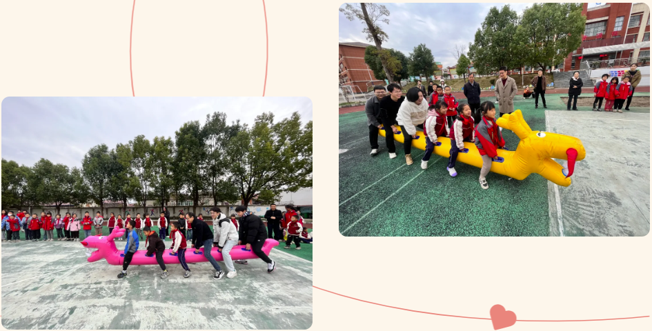 “水面上有只小黃鴨,嘎嘎嘎嘎嘎嘎嘎……”為表達對愛心人士的感激之情,一年級學生表演了打擊樂非洲鼓節目,小孩子們燦爛的笑容,稚嫩的動作,讓職工心里暖暖的。此外,為拉近學生與愛心人士的距離,學校還準備了旱地龍舟趣味活動,由愛心人士與學生共同組成隊伍,相互進行pk,加油聲、歡笑聲響徹學校操場。