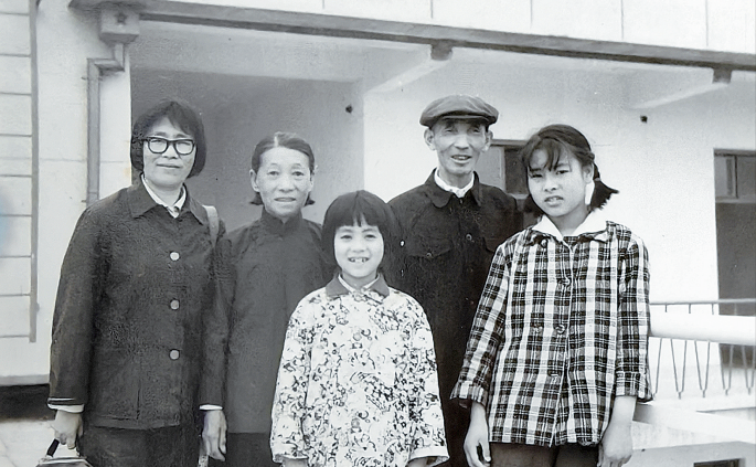 圖為樊萬琴(左一)一家剛來紅峰廠時的合影