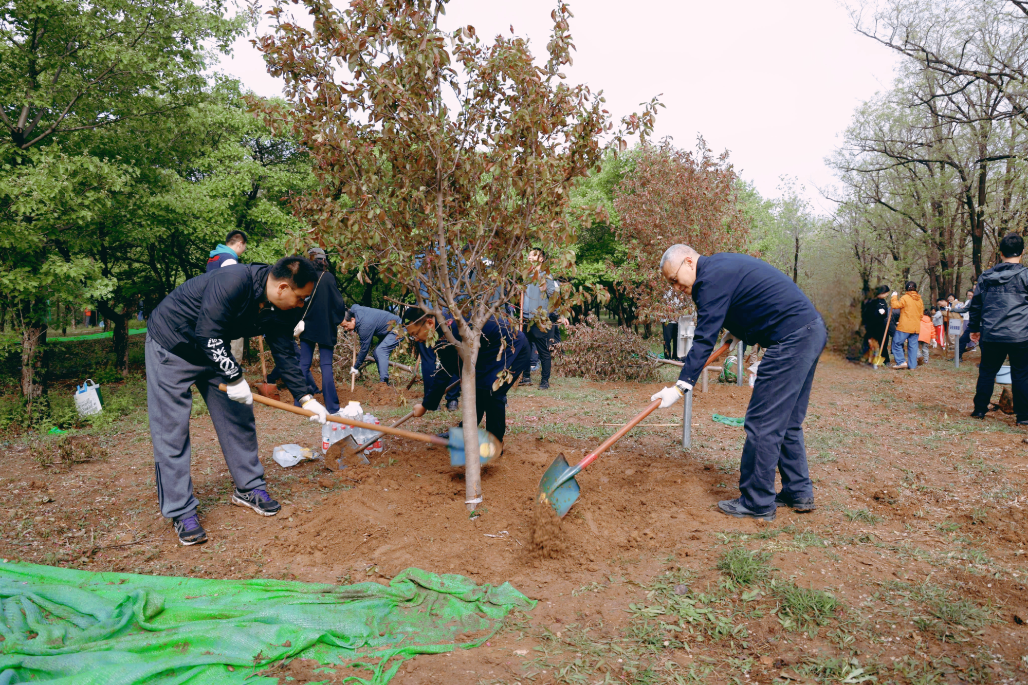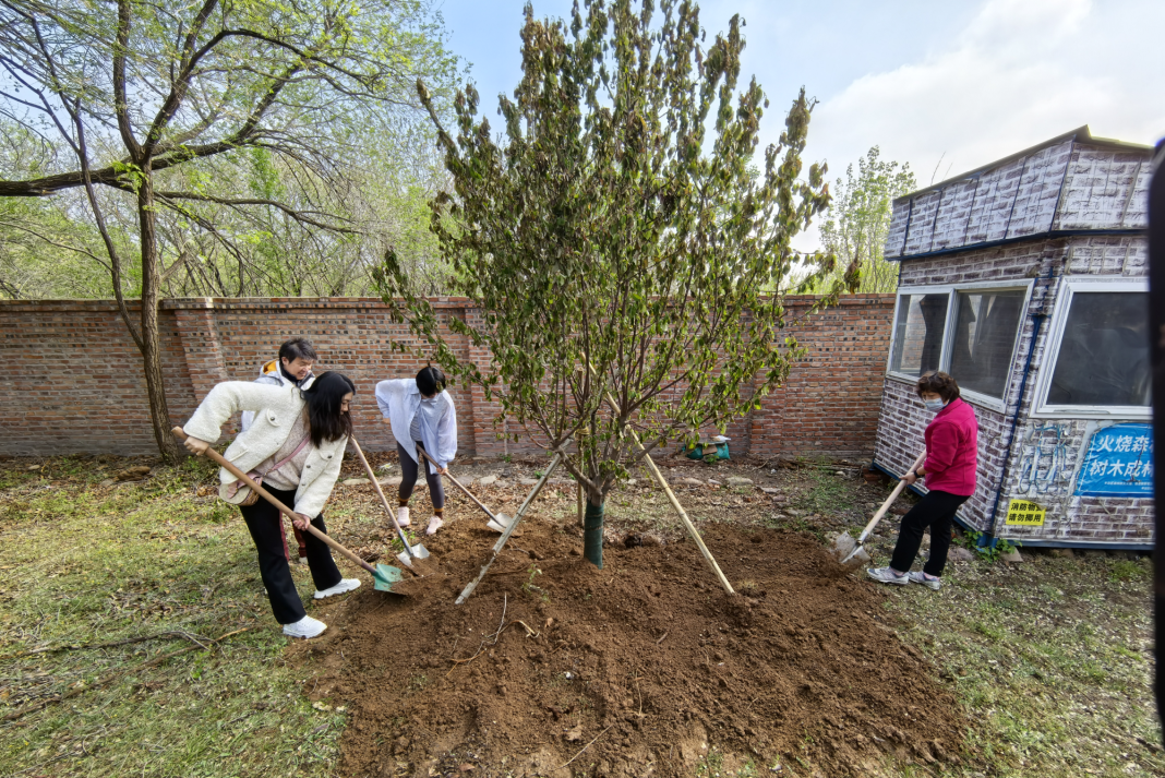 植樹(shù)現(xiàn)場(chǎng),春和景明,一片繁忙有序的勞動(dòng)景象。大家分工協(xié)作,默契配合,揮鍬鏟土、培土圍堰、提桶澆水,種下海棠、山楂、牡丹等樹(shù)苗。在和煦的春風(fēng)中,一株株樹(shù)苗錯(cuò)落有致地挺立著,展現(xiàn)出勃勃生機(jī)。
